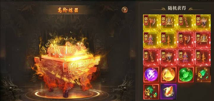 炼器概率产出上古神器、器鼎之灵、器魂之灵(使用可获得器鼎经验)、上古神石(提升上古神器等级);