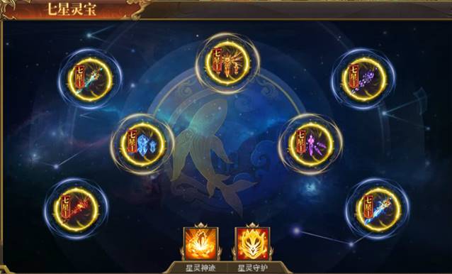 灵宝:新增七星灵宝,收集可获得大量稀有属性和星辰湮灭值,灵宝可通过摘星阁、星辰试炼、运营活动获取。