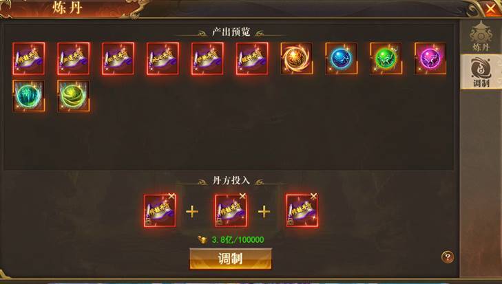 丹方调制:多余丹方可进行调制,概率获得其他丹方或成品丹药。