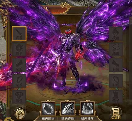 神装幻形:全套三阶可激活破天神装形象;